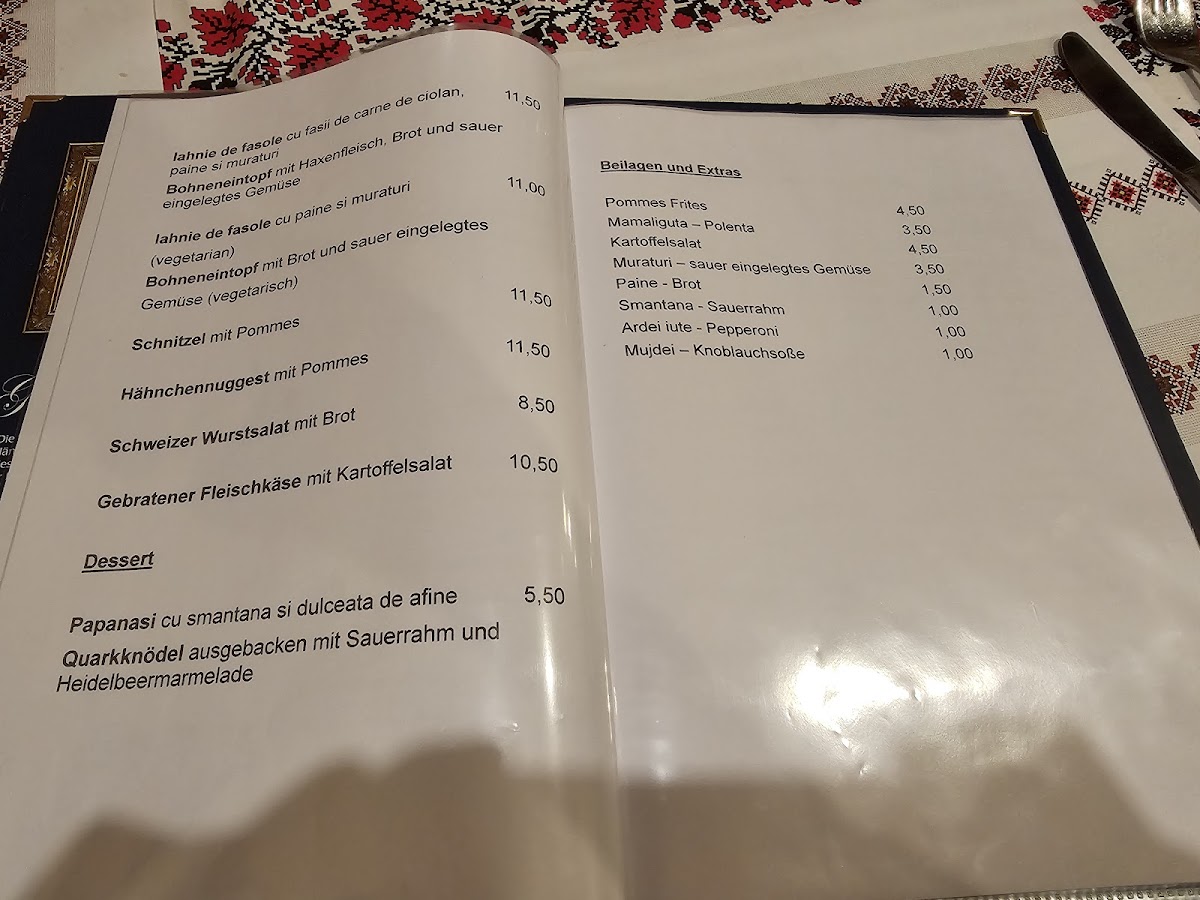 Mealtime here suits a variety of occasions—from casual lunches and relaxing dinners to weekend gatherings where both Romanian classics and familiar German comforts are appreciated. The menu also includes traditional desserts like Prăjituri asortate and Clătite cu dulceață, which complement the warm atmosphere and invite guests to linger a little longer over a coffee or a glass of Dampfbier.